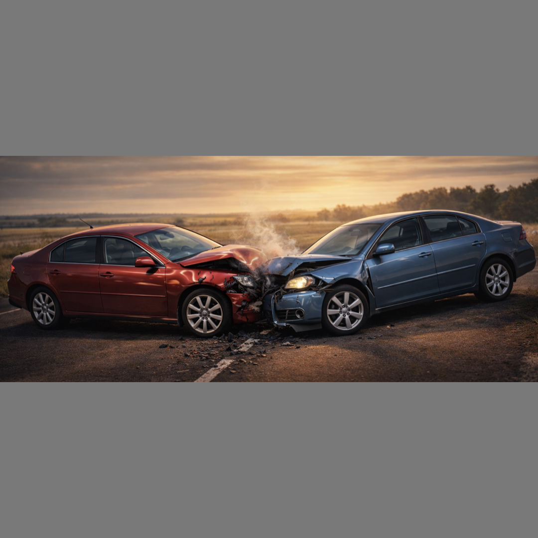 She drives straight into B.’s car, head-on.